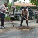 Jaga Kenyamanan Pengendara, Polsek Woja Perbaiki Jalan Berlubang