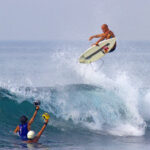 DOMPU – Surfer profesional asal Amerika yang pernah meraih 11 kali juara dunia, ternyata sempatkan diri untuk berkunjung di Pantai Lakey di