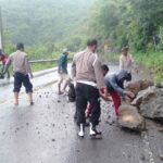 Akibat Hujan Deras Tanah Longsor di Nanga Tumpu Menutupi Ruas Jalan
