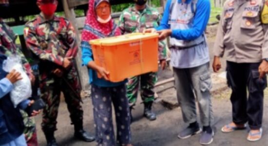 SUMBAWA – BhabinkamtibmasDesa Labuhan Aji Kecamatan Labuan Badas Bripka Yamin dampingi penyaluran bantuan kepada warga yang terkena musibah kebakaran rumah di Dusun