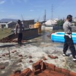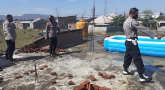 Nampak aparat Polsek Dompu Kota sedang melakukan pemeriksaan di TKP. DOMPU– Seorang bocah yang hendak mandi di kolam renang plastik lantai dua