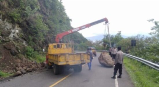 DOMPU – Pengendara roda dua dan roda empat yang melintas di sepanjang Tanjakan Nanga Tumpu, Kecamatan Manggelewa sebaiknya berhati-hati. Sebab, ancaman tanah