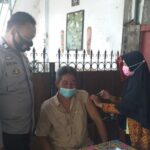 Mataram – Bhabinkamtibmas Kelurahan Monjok Timur Aiptu Dewa Putu Suara Yasa melaksanakan kegiatan pengamanan sekaligus monitoring kegiatan penyuntikan Vaksin Covid-19 kepada Lansia atau